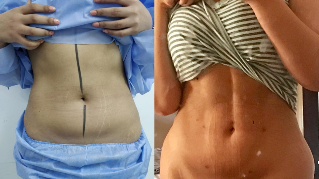 Following liposuction, the scars, which are extremely small, may be a little red. Over the next 6-12 months they slowly fade. You will start scar treatments around 2 weeks after surgery. I will discuss scar care in detail with you and also provide you with scar medications and products. The scars will be almost invisible.
